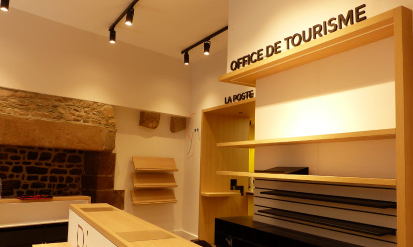 Au cœur du village du Mont Saint-Michel, à l’emplacement même du premier hôtel de La Mère Poulard, Structure est invité à concevoir un bureau regroupant La Poste et l’Office de Tourisme. On y trouve encore la cheminée dans laquelle la fameuse restauratrice a cuit ses premières omelettes.